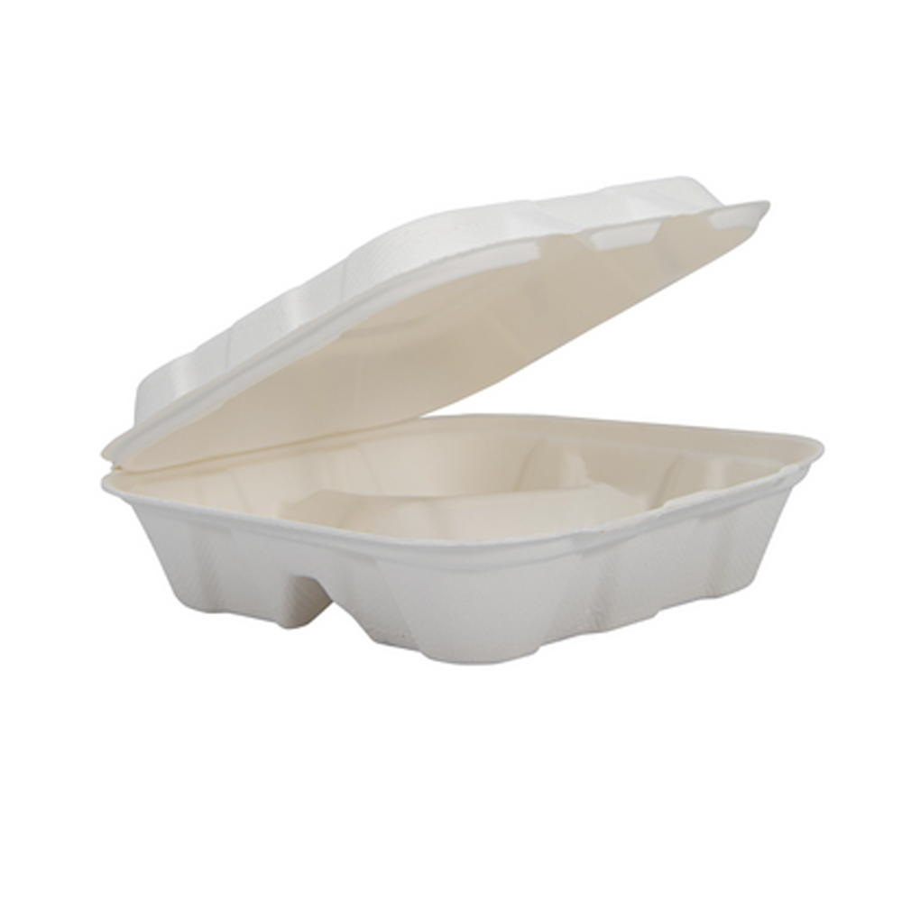 HC8FBR3 White 8" 3 Compartment PFAS-Free Hinged Container 2/100 cs